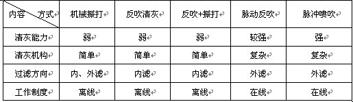 清灰方式是決定袋式除塵器性能的一個(gè)重要因素。以清灰方式對(duì)袋式除塵器進(jìn)行分類(lèi),基本型式主要有:機(jī)械振打清灰方式、反吹清灰方式反吹、振打聯(lián)合清灰方式、脈動(dòng)反吹清灰方式、脈沖噴吹清灰方式。低壓脈沖袋式除塵器屬于脈沖噴吹清灰方式。